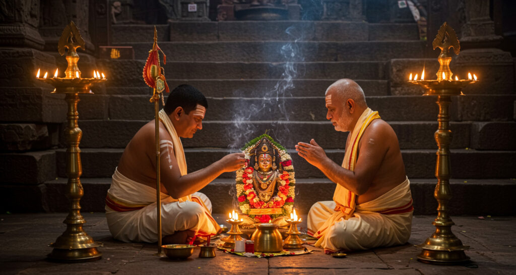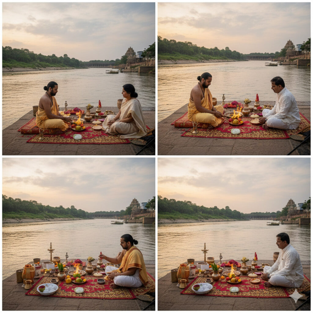 Connect with an experienced and certified Vedic Purohit in Srirangapatna for an authentic and seamless ritual experience. We ensure all procedures, including Sankalpam, Pind Pradanam in the Kaveri River, and Narayan Bali Homa, are performed with strict adherence to the Vedic Shastras.